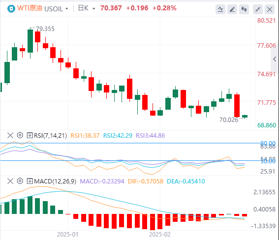 周一亚盘,原油交投70.36附近。加沙停火降低了中东风险溢价,投资者权衡乌克兰可能达成的和平协议。中国研究人员在蝙蝠中发现新冠病毒的报道也导致了市场的谨慎情绪。由于炼油厂季节性维护,上周美国原油库存增加,加剧了看跌压力。美国能源信息署报告称,库存增加,加上美国石油和天然气钻井平台的持续增加,表明未来几周的供应可能会增长。