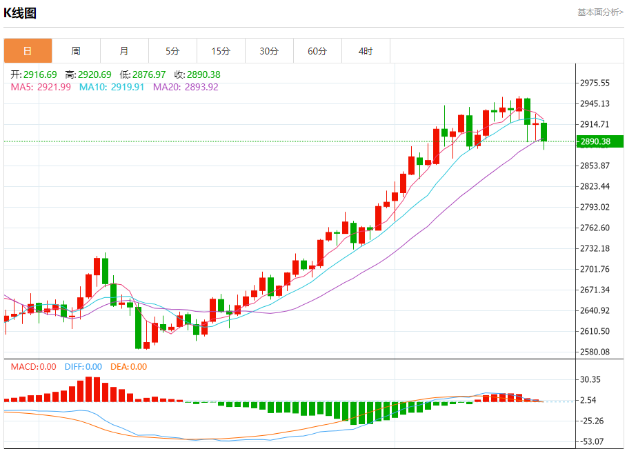 现货黄金:截止北京时间21:21,现货黄金下跌,现报2890.19,跌幅0.89%。纽市盘前,黄金价格从昨天开始横盘整理,位于EMA50下方,对价格形成了良好的阻力,注意到随机指标明显失去了积极的势头。