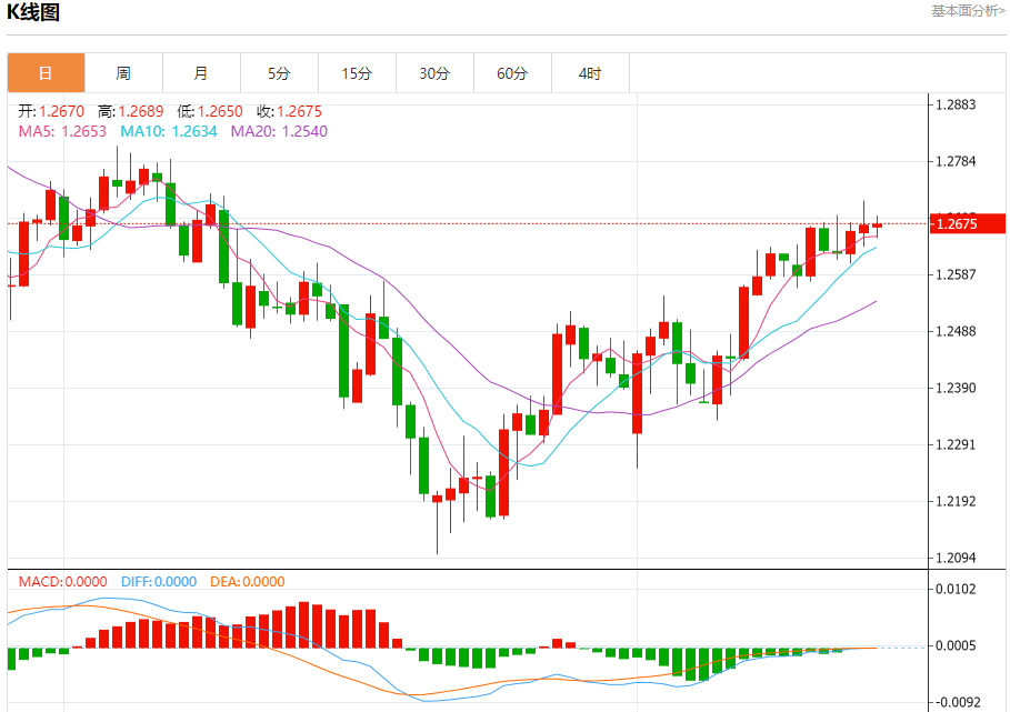 英镑/美元:截止北京时间21:21,英镑/美元上涨,现报1.2678,涨幅0.03%。纽市盘前,GBPUSD价格达到1.2700美元关口,受RSI负面影响,从该处开始熊市反弹,可能会测试1.2605美元的关键支撑,然后再次转向上涨。