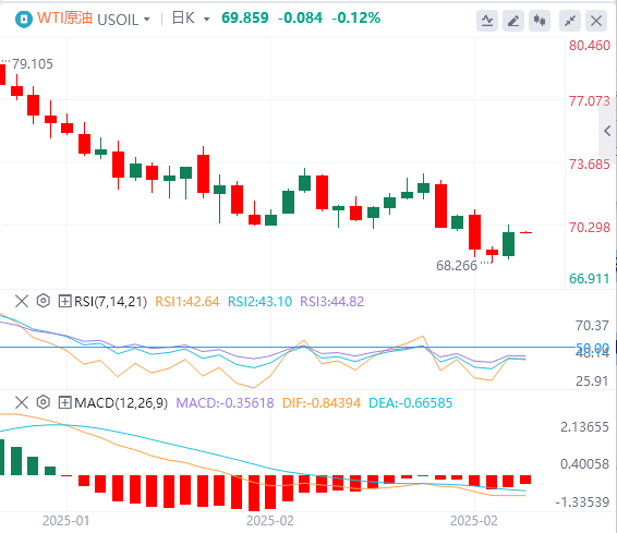 周五亚盘,原油交投69.80附近。在美国唐纳德·特朗普总统撤销了授予美国石油公司雪佛龙在委内瑞拉运营的许可证之后,供应问题再次浮出水面。特朗普还表示,对墨西哥和加拿大的关税将于3月4日生效。这些关税包括对从加拿大进口的能源征收10%的税。PVM的分析师TamasVarga表示。“对等关税、税收和支出削减可能会加大通胀压力并削弱经济增长”。然而,投资者仍在关注乌克兰潜在和平协议的迹象,这可能会导致俄罗斯石油流量增加。