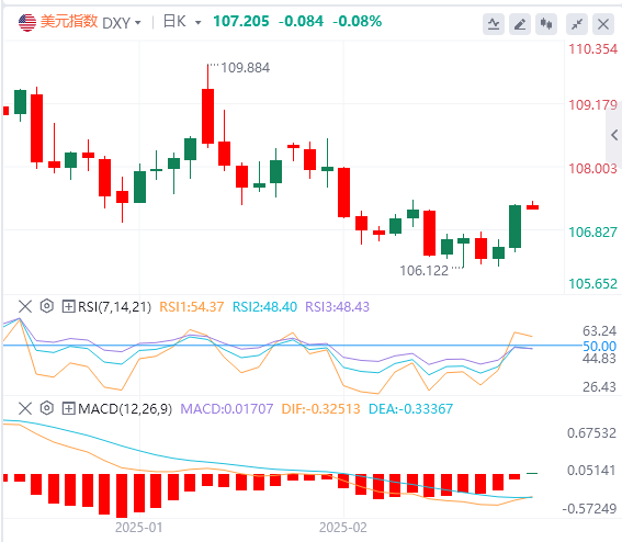 2月28日,北京时间周五亚市早盘,美元指数徘徊在107.20附近。在美国总统特朗普声称下周开始对加拿大和墨西哥征收关税之下,美元指数周四突然跳涨,并重回107关口上方,最终收涨0.74%,创两个月以来的最大单日涨幅,报107.28。美债收益率延续下跌势头,基准的10年期美债收益率继续下行,报4.294%;对货币政策更敏感的两年期美债收益率收报4.109%。随着美元走强,现货黄金日内跌超1%,较日高一度大跌超50美元,最低跌至2867.95美元,创两周来的最低水平,最终收跌1.35%,报2876.99美元/盎司。现货白银最终收跌1.85%,报31.25美元/盎司。因特朗普撤销了美国石油巨头雪佛龙在委内瑞拉的经营许可,导致供应担忧重现。两油有所回升。WTI原油一度重回70美元上方,但未能站稳在这一关口上方,最终收涨1.83%,报69.94美元/桶;布伦特原油收涨1.44%,报73.29美元/桶。