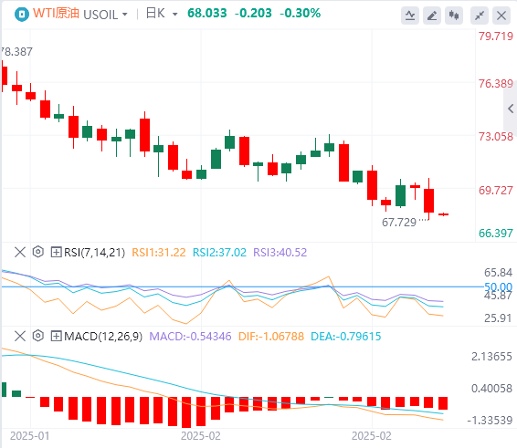 3月4日,北京时间周二亚市早盘,美元指数徘徊在106.55附近。周一,由于美国经济数据提供了喜忧参半的信号,市场担忧美国的经济状况,美元指数日内持续下行,并跌破107关口,最终收跌0.94%,报106.54。美债收益率延续下跌势头,基准的10年期美债收益率继续下行,报4.159%;对货币政策更敏感的两年期美债收益率跌破4%关口,收报3.958%。因美元走软,以及对美国总统特朗普关税政策的担忧引发了避险买盘,现货黄金日内反弹超1%,一度逼近2900美元关口,但未能冲上此处,最终收涨1.24%,报2893.67美元/盎司。现货白银收涨1.71%,报31.67美元/盎司。因欧佩克+确认4月增产,两油周一跌超2%,创近半年来的新低。WTI原油在美盘时段持续下行,并在尾盘跳水,一度跌至67美元,最终收跌2.16%,报68.23美元/桶;布伦特原油收跌2.16%,报71.39美元/桶。
