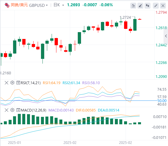 欧元:截止发稿,欧元/美元徘徊于1.0489附近。欧元/美元上周一上涨,收报1.0488,涨幅1.08%。美国PCE通胀报告符合预期,月度整体PCE稳定在0.3%。核心PCE从12月的0.2%小幅上升至0.3%,而年度整体PCE为2.6%,略高于预期,但与12月的数字持平。核心PCE从12月修正后的2.9%降至2.6%。技术面上,欧元/美元最近的阻力位位于1.0515–1.0530区间。突破1.0530水平将推动欧元/美元走向阻力位1.0600–1.0615。