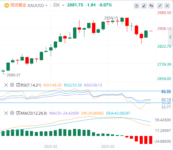 技术面:金价在连续两天的下跌后恢复上涨趋势,推动黄金跌破2900美元。尽管如此,买家在2830美元关口附近进军,将现货价格推高至2850美元以上,这加剧了向2893美元的反弹。如果买家的日收盘价高于2900美元,金价可能会挑战年初至今(YTD)的峰值2954美元。否则,如果进一步走软,黄金可能会瞄准2月14日的低点2877美元,然后是2月12日的摆动低点2864美元。然而,除非黄金跌破2800美元,否则更广泛的上涨趋势保持不变。