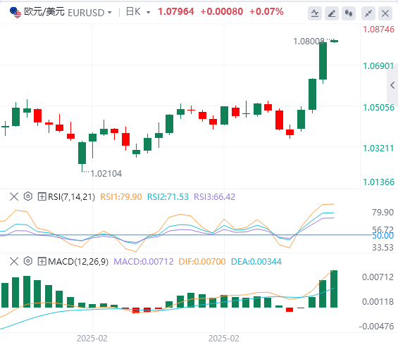 欧元:截止发稿,欧元/美元徘徊于1.0796附近。欧元/美元上周三上涨,收报1.0788,涨幅1.54%。因为在美国总统唐纳德·特朗普再次转向自己的关税策略后,风险情绪上升。特朗普总统再次踩下了自己的贸易战略的刹车,威胁要对自己的公民征收严厉的进口税,以惩罚其他国家对唐纳德·特朗普的一连串轻视。技术面上如果欧元/美元收于阻力位1.0760–1.0715上方,它将向下一个阻力位1.0920–1.0935移动。