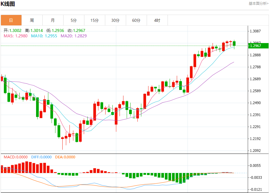 英镑/美元:截止北京时间20:20,英镑/美元下跌,现报1.2968,跌幅0.26%。纽市盘前,英镑/美元汇率在短期内可能继续维持震荡偏强走势。美联储政策导向对美元形成一定打压,为英镑/美元汇率提供了上涨动力,但英国自身经济数据的不确定性以及地缘政治风险的干扰,限制了汇率的涨幅。