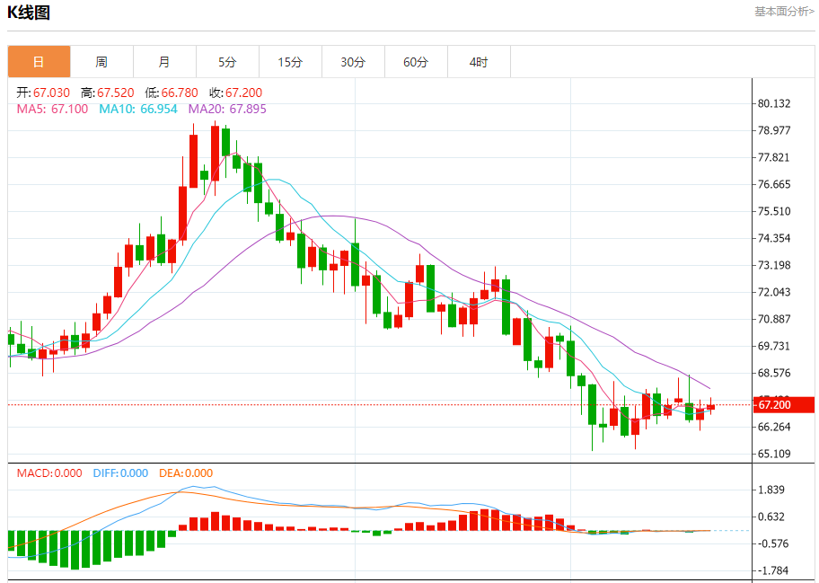 原油市场:截止北京时间20:20,美油上涨,现报67.180,涨幅0.40%。纽市盘前,原油价格在后市走势充满不确定性。宏观经济层面,全球经济增长前景的不明朗以及利率、汇率的波动,将持续影响原油的供需和价格。地缘政治局势的紧张或缓和,对原油供应和市场情绪有着直接的冲击。