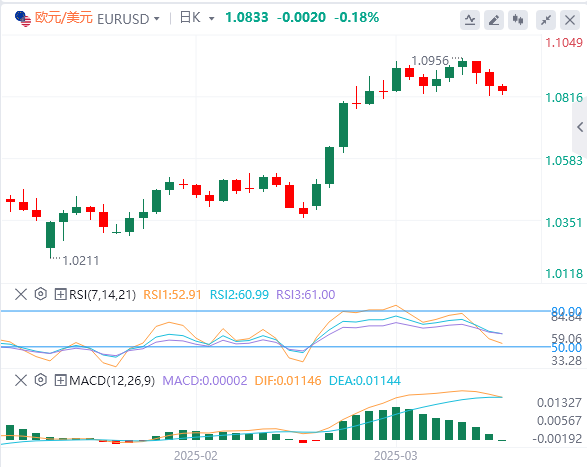 欧元/美元下跌约0.5%,周四连续第二天收于负值区域。该货币对在欧洲早盘难以反弹,交投于1.0850下方。当天晚些时候,欧盟委员会将公布3月份的初步消费者信心数据。