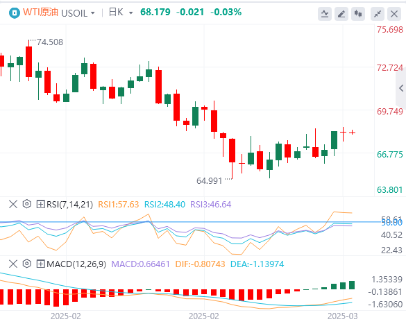 周一亚盘,原油交投68.17附近市场正在从新的地缘政治风险和主要生产商重新开始的供应纪律中汲取力量,尽管移动平均线普遍呈下跌趋势,但加强了看涨情绪。美国财政部对一家中国炼油厂及其首席执行官实施制裁,指控其购买伊朗原油。此外,美国还制裁了多艘疑似属于“影子舰队”的油轮,这些船只被指控专门运输伊朗原油,规避国际制裁。