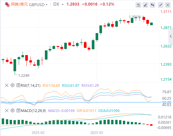 美元指数:截止发稿,美元指数徘徊在104.03附近。美联储维持利率不变,重申2025年两次降息的预测。美联储主席鲍威尔淡化了关税对通胀的影响,称其只是暂时影响,但承认很难评估其更广泛的影响。尽管鲍威尔表示,目前经济衰退的风险仍然相对较低,但衰退风险仍有所上升。美国初请失业金人数低于预期,推动美元突破104.00。技术面上,美元指数最近的阻力位位于104.30–104.50区间。突破104.50水平将推动美元指数走向下一个阻力位,即位于105.50–105.70区间。