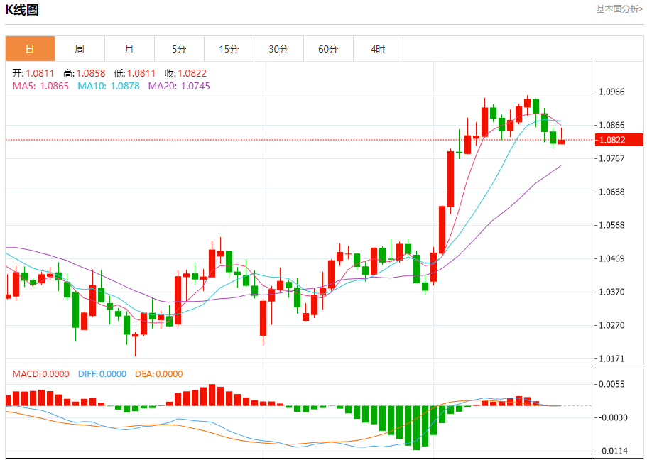 欧元/美元:截止北京时间20:20,欧元/美元上涨,现报1.0825,涨幅0.11%。纽市盘前,在重新测试1.0860美元的阻力后,欧元/美元价格在盘中小幅下跌,反弹并削减了部分早期涨幅,同时在短期内向下修正波占主导地位的情况下,释放了随机指标中的超卖饱和。