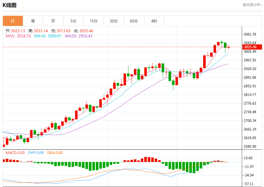 现货黄金:截止北京时间20:20,现货黄金上涨,现报3025.29,涨幅0.07%。纽市盘前,黄金价格在最近的盘中交易中小幅走高,同时在短期内沿着第二条上升趋势线移动,因为价格受到50蜡烛线上方交易的支撑,但抛售压力仍然强劲和有限。