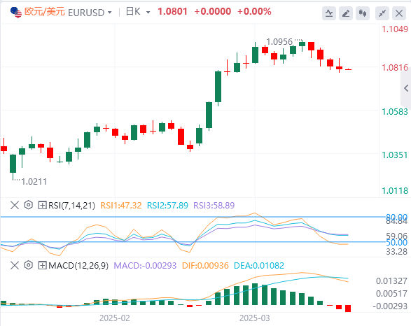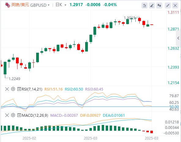 欧元:截止发稿,欧元/美元徘徊于1.0801附近。欧元/美元波动,测试跌破1.0800关口,市场情绪继续受到混合经济数据和持续的关税担忧的影响。投资者在美国总统唐纳德·特朗普暗示可能对原定于4月2日实施的关税豁免后找到了一些缓解,但采购经理人指数(PMI)调查结果仍然警告可能会出现更多问题。经济数据日程在周中市场交易中仍然保持在中等水平,但交易员将密切关注周五即将公布的美国个人消费支出物价指数通胀数据。如果欧元/美元收于最近的支撑位1.0760–1.0775下方,它将向下一个支撑位1.0630–1.0650移动。