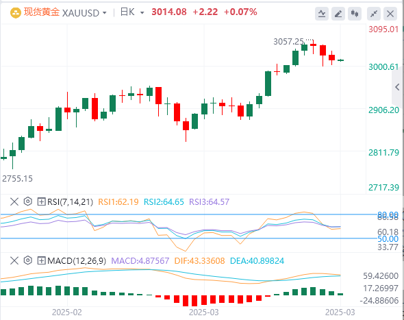 周二亚盘,黄金交投3014.06附近。黄金价格连续第三个交易日延续跌势,因有消息称对等关税将集中在一些美国(US)贸易伙伴,市场情绪有所改善。彭博社的一篇文章显示,美国总统唐纳德·特朗普政府将在4月2日针对特定国家,而不是对大多数国家征收互惠关税。相反,这些措施针对的是所谓的Dirty15贸易伙伴。