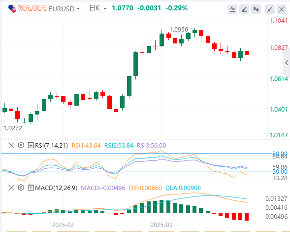 欧元/美元周四上涨近0.5%,结束了连续六天的下跌。该货币对在周五欧洲早盘的1.0800附近处于盘整阶段。
