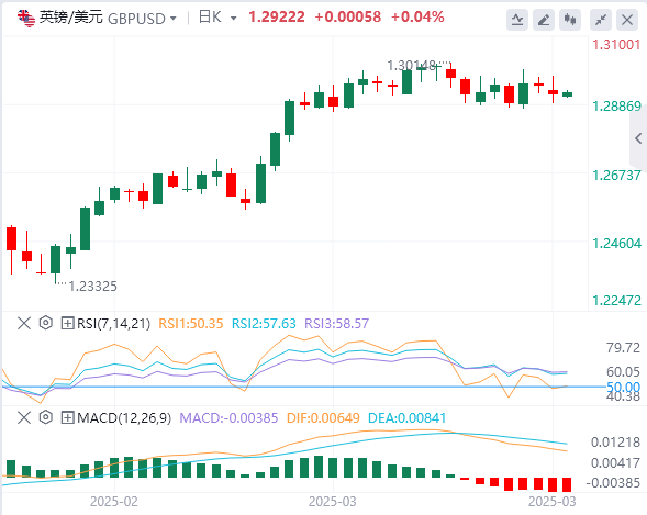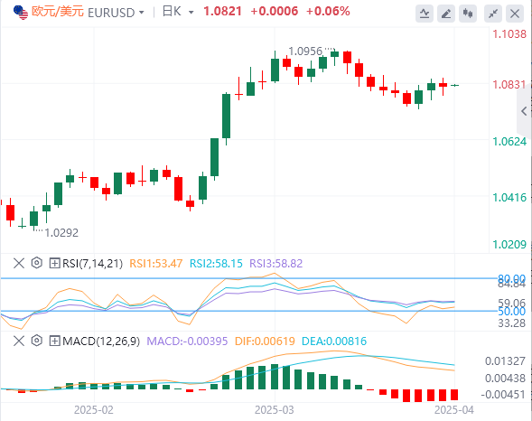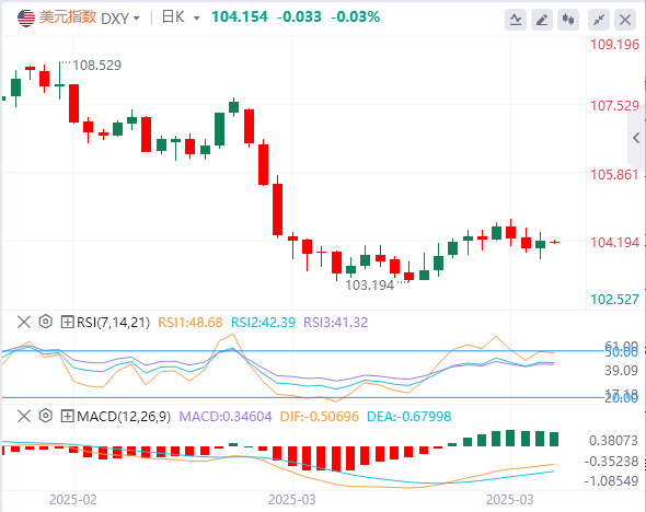 美元指数:截止发稿,美元指数徘徊在104.15附近。周一持平,方向性流动有限,尽管股市暴跌,金价创下3,100美元以上的新高,但美元仍处于观望状态。交易员似乎更关注经济信号而不是贸易紧张局势,周一的交易时段以对区域制造业数据和迫在眉睫的关税截止日期的预期为标志。技术面上,如果美元指数收于阻力位104.30–104.50上方,它将向下一个阻力位105.50–105.70移动。