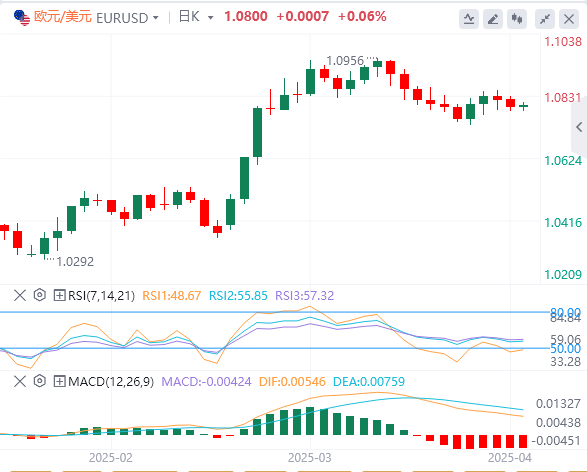 欧元/美元在周二小幅下跌后,在1.0800下方的窄幅区间内横盘整理。几位欧洲央行(ECB)决策者将在当天晚些时候发表讲话。