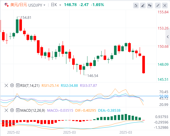 关税宣布后,美元指数周三下跌0.5%,并在周四的亚洲交易时段延续跌势。截至发稿时,美元指数当日下跌超过1%,接近102.50。
