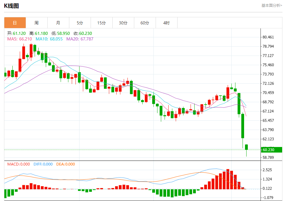 花旗下调布伦特原油0-3个月预期至60美元/桶