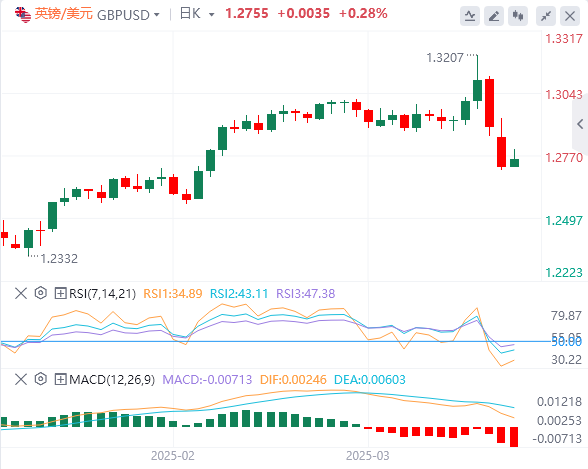 英镑/美元周一下跌超过1%,并触及一个月来的最低水平1.2720附近。该货币对周二修正走高,交易价格略高于1.2750。
