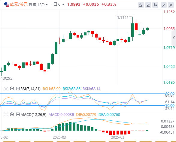 欧元:截止发稿,欧元/美元徘徊于1.0993附近。欧元/美元在周二小幅回升,结束了连续两天的下跌,并在特朗普政府广泛的“对等”关税于4月9日生效前录得一些最后时刻的涨幅。关键政策制定者的美联储言论开始与市场对美联储在2025年剩余时间内降息的上升预期发生冲突,使市场面临广泛关税的负面影响。技术面上,跌破50MA1.0888将推动欧元/美元跌至支撑位1.0750–1.0765。