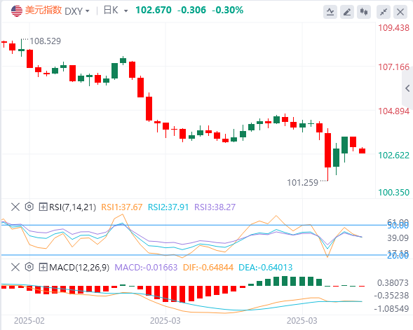美元指数:截止发稿,美元指数徘徊在102.67附近。上周乐观的劳动力市场数据提振了市场情绪,帮助该指数从近期低点反弹。投资者欢迎美国贸易代表(USTR)贾米森·格里尔在参议院财政委员会上的发言,他表示美国正在与近50个国家进行关税讨论。技术面上,如果美元指数收于103.00水平以下,它将向最近的支撑位移动,即位于101.70–101.90区间。