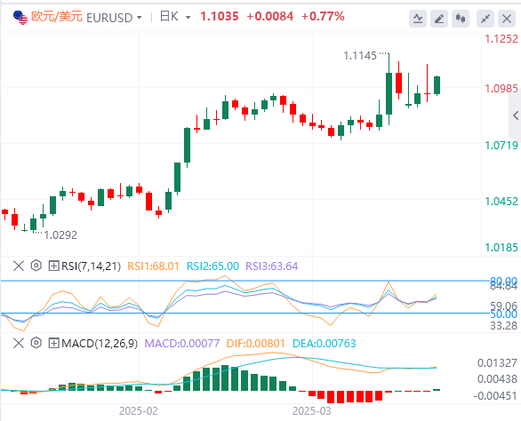 欧盟委员会周四早些时候表示,他们将与成员国和行业协商,并花必要的时间评估有关特朗普关税的最新进展,然后再决定下一步。欧元/美元周四积聚看涨势头,并在1.1000上方上涨超过0.5%。