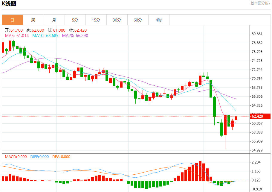 原油市场:截止北京时间20:18,美油上涨,现报62.410,涨幅1.48%。纽市盘前,原油价格在其最近的盘中交易中上涨,挑战61.50美元的关键阻力位,受到短期看涨修正波和相对强弱指数(RSI)积极信号的出现的支持。但是,价格也面临着一个强大的障碍,那就是EMA50的阻力。