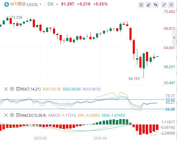 技术面:WTI原油期货价格在59.53美元至62.68美元区间波动,显示市场观望情绪浓厚,等待突破契机。若价格突破62.68美元,目标可能指向50日均线所在的68.30美元;若跌破59.53美元,可能考验53美元支撑位。高盛下调石油预期,预计2025年剩余时间内,美国西德克萨斯中质原油(WTI)均价为59美元,布伦特原油均价为63美元。