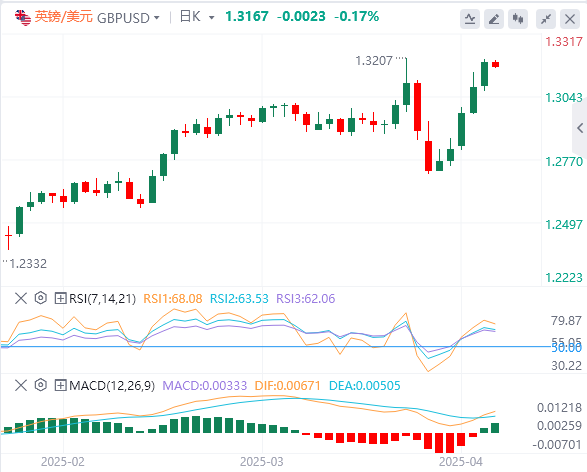 欧元:截止发稿,欧元/美元徘徊于1.1321附近。由于特朗普政府最新的关税威胁反转,美国美元在各方面继续走软,但由于投资者对持续贸易紧张局势的担忧,市场情绪依然低迷。技术面上,欧元/美元最近的支撑位位于1.1275–1.1290区间。跌破1.1275水平将为测试下一个支撑位1.1185–1.1200开辟道路。