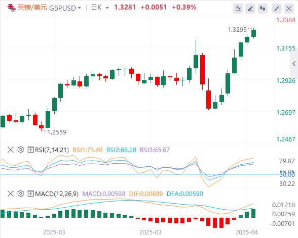英国国家统计局周三早些时候报告称,以消费者价格指数(CPI)变化衡量的年度通胀率从2月份的2.8%小幅降至3月份的2.6%。同期,核心CPI上涨3.4%,符合预期。英镑/美元在很大程度上忽略了这些数字,上一次交易于10月以来的最高水平1.3250上方。