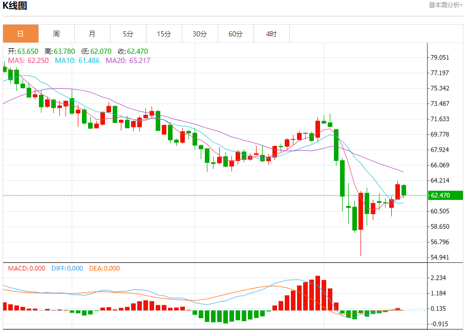 原油市场:截止北京时间20:22,美油下跌,现报62.470,跌幅2.39%。纽市盘前,原油价格在盘中水平的最后一个交易中停留在下行区域,试图获得可能有助于其恢复和再次上涨的积极势头,以在短期基础上达到看涨的修正偏向线,除了(RSI)达到与价格走势相比被夸大的超卖水平,作为开始形成积极背离的信号,这可能支持积极的情景。