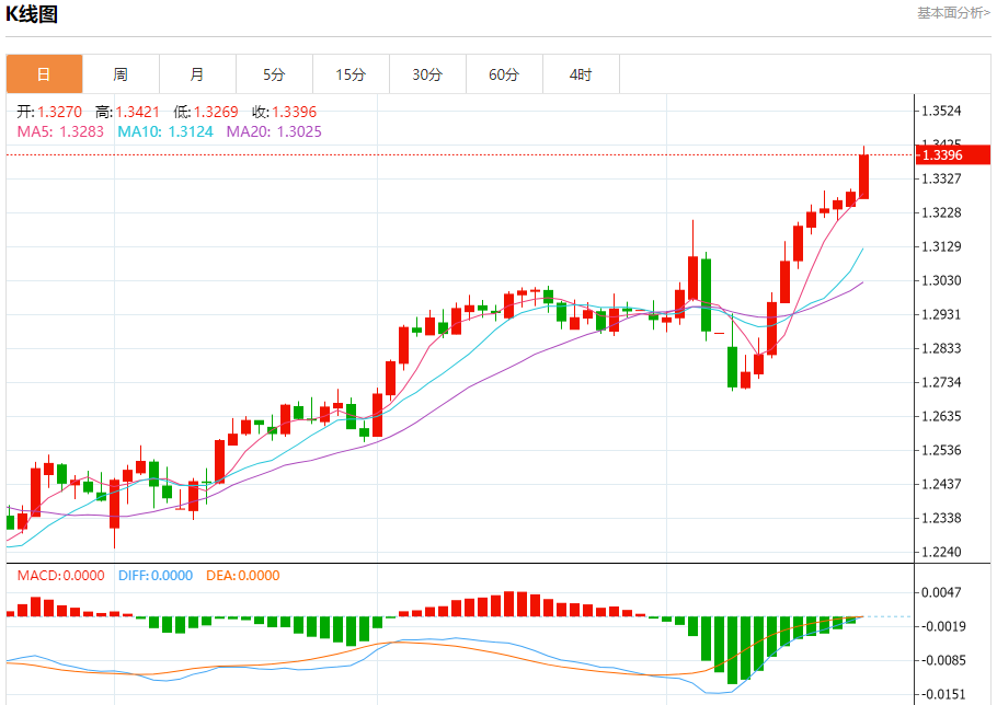 英镑/美元:截止北京时间20:22,英镑/美元上涨,现报1.3396,涨幅0.80%。纽市盘前,GBPUSD价格在最近的盘中交易中明显上涨,突破了当前的阻力1.3290,巩固了其在主要看涨趋势和短期小幅大幅波动中的涨幅。