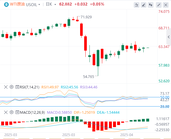 技术面:原油在涨跌之间摇摆不定,因为交易员对关税消息的反应。中国免除了一些美国进口商品的关税,贸易商希望这是两国之间达成全面协议的第一步。由于WTI油价停留在62.50美元至63.00美元的阻力位附近,技术面保持不变。