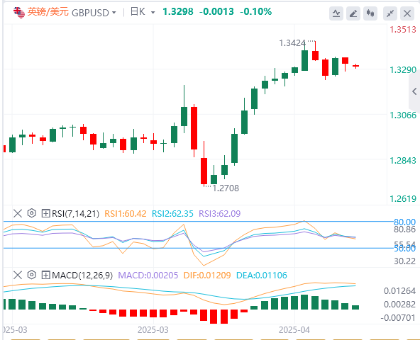 英镑:截止发稿,英镑/美元徘徊于1.3298附近。市场关注英国与美国之间的持续谈判。英国似乎愿意降低美国产品进入英国市场的关税和非关税壁垒,可能的贸易协议若能降低美国对英国产品的关税,可能为英镑提供一定支持。英吉利海峡另一边,据报道英国政府即将与欧盟达成新的防务协议,若真如此,这一议题可能对英镑有所支撑。总体而言,市场认为英国与欧盟关系的任何改善都将有利于英镑。技术面上,如果英镑/美元收于1.3320水平上方,它将向最近的阻力位1.3400–1.3420移动。