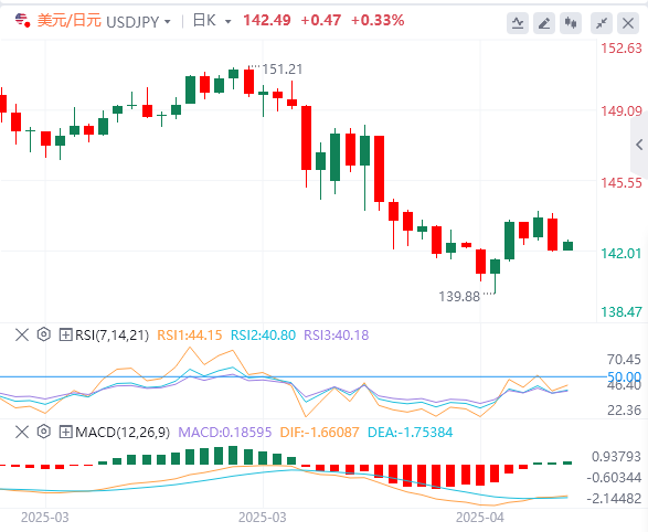 美元/日元在周一下跌超过1%后反弹并在142.30附近交投于积