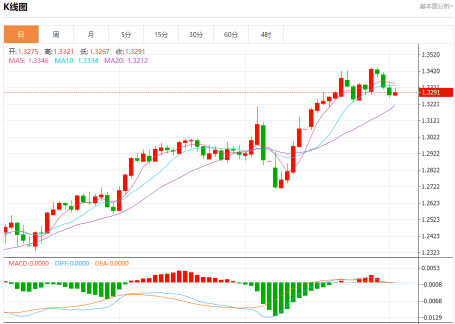 英镑/美元:截止北京时间20:16,英镑/美元上涨,现报1.3291,涨幅0.10%。纽市盘前,GBPUSD在日内水平上见证了轻微的看涨反弹,试图收复之前的一些损失,并成功卸载了(RSI)上的一些超卖条件,这是负面信号回归,表明了卖方力量的主导地位。