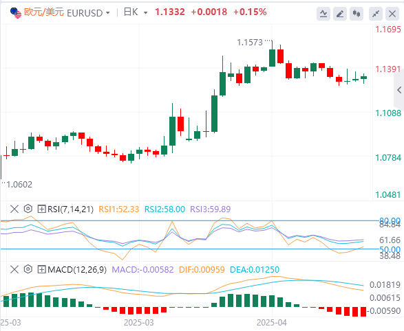欧元/美元当天小幅走高,但在欧洲时段仍低于1.1350。