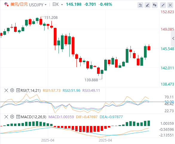 美元/日元保持了看涨势头,周四上涨超过1%。该货币对周五早盘修正走低,但保持在145.00上方。