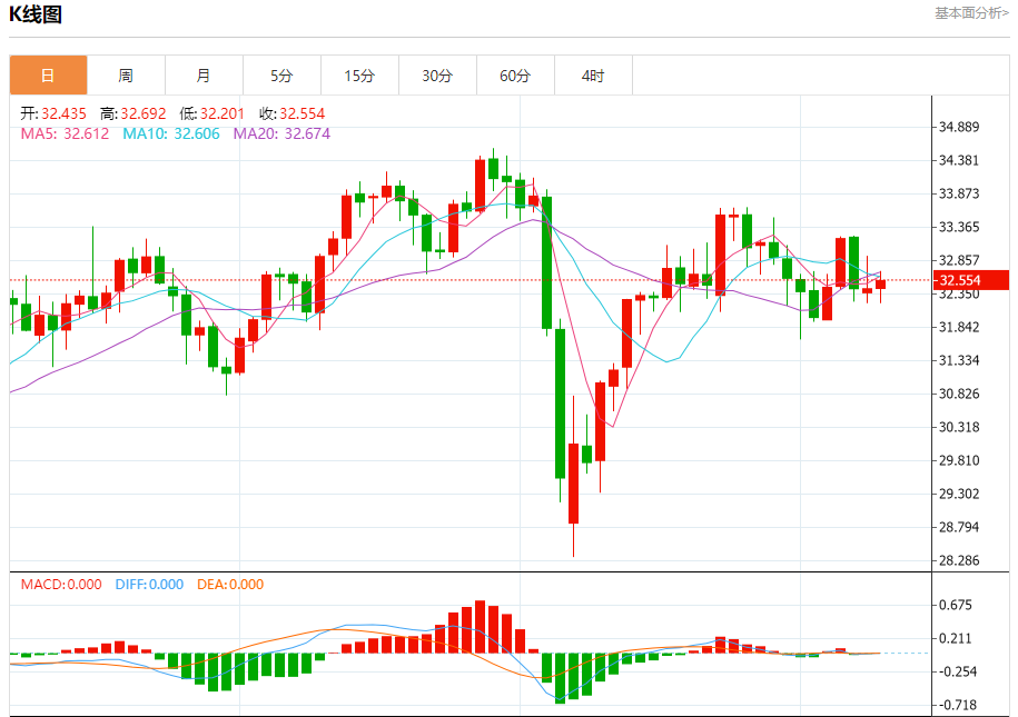 现货白银:截止北京时间20:18,现货白银上涨,现报32.554,涨幅0.39%。纽市盘前,在(RSI)上出现的积极信号的支持下,白银价格在最后一个交易日上涨,重新测试了32.70美元的阻力,并伴随着触及其EMA50的阻力,加强了该区域作为价格阻力的强度,特别是在打破短期看涨修正偏差的影响下。