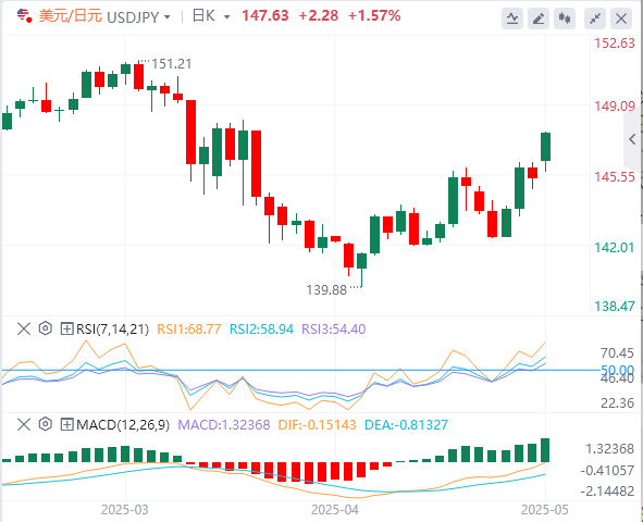 在以小幅上涨缺口开局后,美元/日元继续上涨,交易价格在148.00附近,创下近一个月来的最高水平。