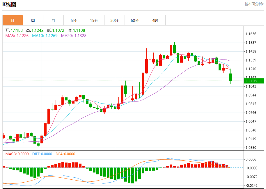 欧元/美元:截止北京时间20:20,欧元/美元下跌,现报1.1108,跌幅1.25%。纽市盘前,(欧元兑美元)的价格在最后一个交易日下跌,在熊市修正趋势占主导地位的情况下,随着(RSI)上负面信号的出现,其交易沿着一条斜线进行,达到我们上午的目标1.1145,这代表了短期基础上最后一波牛市的50%斐波纳契修正水平(从1.0730到1.1572)。
