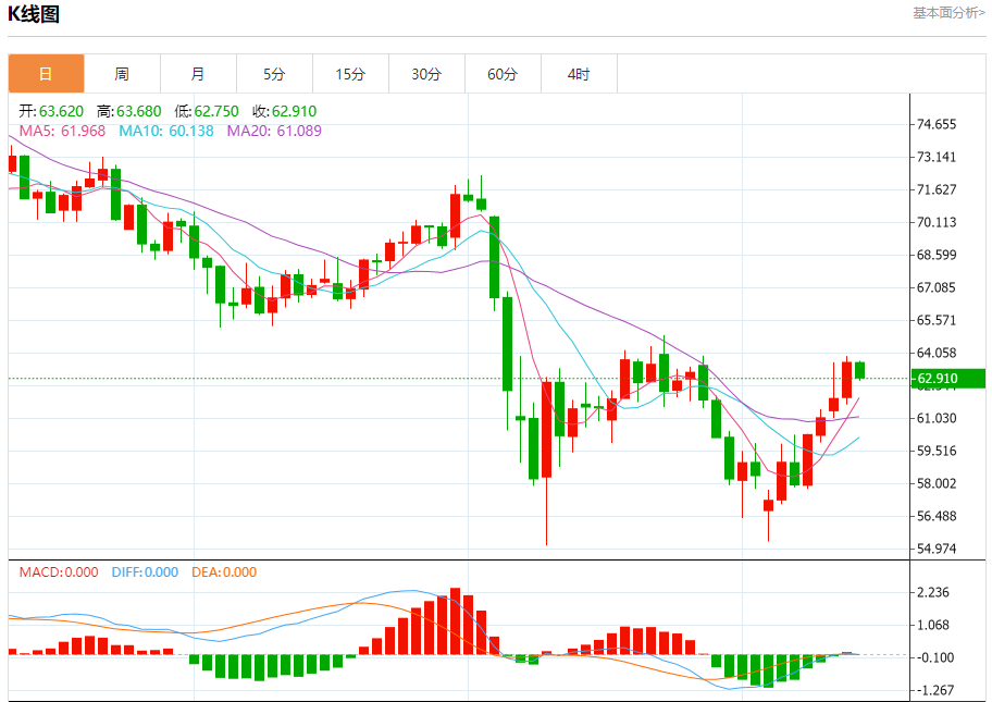 原油市场:截止北京时间20:18,美油下跌,现报62.890,跌幅1.23%。纽市盘前,(原油)价格在最近的盘中交易中下跌,在短期基础上的看涨修正波占主导地位,并沿着偏向线交易,试图收集之前上涨的收益,试图通过卸载(RSI)上的一些明显超买条件获得积极的动力,特别是在它们出现负面信号的情况下。