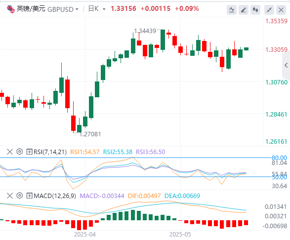 欧元:截止发稿,欧元/美元徘徊于1.1206附近。泛欧第一季度国内生产总值(GDP)数据略微下滑,环比降至0.3%。年化GDP仍保持在1.2%的水平,但第一季度数据的疲软仍让Fiber交易者感到犹豫。在美国,4月份生产者价格指数(PPI)通胀环比仅下降0.1%,让投资者暂时放松,感觉关税效应尚未影响关键经济数据。技术面上,如果欧元/美元跌破1.1150水平,它将测试最近的支撑位1.1110–1.1130。