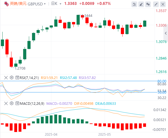 英镑/美元获得牵引力,周一交易于1.3300上方。该货币对从触及的数周低点1.3140回升后,上周收盘小幅走高。