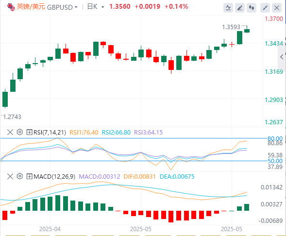 英镑/美元在上周上涨近2%后延续涨势,并交投于2022年2月以来的最高水平1.3550上方。