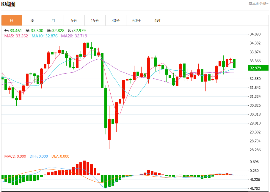 现货白银:截止北京时间20:21,现货白银下跌,现报32.991,跌幅1.40%。纽市盘前,(白银)价格在最近的盘中交易中下跌,试图获得可能有助于其再次上涨的积极势头,同时在短期基础上沿着看涨趋势线交易,继续承受来自其EMA50上方交易的积极压力,注意到(RSI)达到超卖水平,与价格波动相比被夸大了。