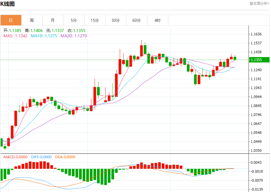 欧元/美元:截止北京时间20:21,欧元/美元下跌,现报1.1355,跌幅0.28%。纽市盘前,随着(RSI)上负面信号的出现,(欧元兑美元)的价格在最近的盘中交易中上涨,试图获得可能有助于其恢复和再次上涨的积极势头,同时在短期基础上沿着一条小的看涨趋势线交易,受其在EMA50上方交易的支持。