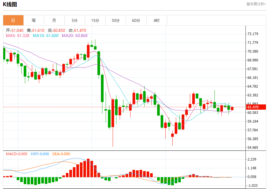 原油市场:截止北京时间20:20,美油上涨,现报61.500,涨幅1.02%。纽市盘前,(原油)价格在最近的盘中交易中上涨,受到(RSI)上出现的积极信号的支持,由于其交易低于ema50,其交易沿着短期的主要熊市趋势线进行,因此持续存在负面压力。