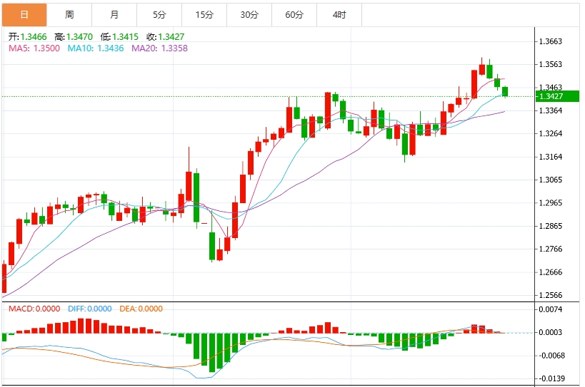 美元:截止发稿,美元指数震荡于100.30附近,本交易周剩余时间美国方面的数据仍然较为重要。 美国第一季度国内生产总值(GDP)增长数据定于周四公布。 周五将以4月份美国个人消费支出价格指数(PCE)通胀数据结束本交易周。 市场希望在特朗普政府的关税政策影响开始渗透到主要数据集之前,关键通胀指标能够继续缓解。技术上,美元目前正测试100.5500的关键阻力位。布林带显示,价格正在向中轨99.9928靠拢,上轨位于101.4373,下轨位于98.5482。若能有效突破100.5500阻力,后市有望进一步上探101.4373的布林上轨位置。MACD指标显示,DIFF线(-0.3566)正在向上穿越DEA线(-0.3317),MACD柱状图(-0.0496)负值收窄,显示空头动能正在减弱。